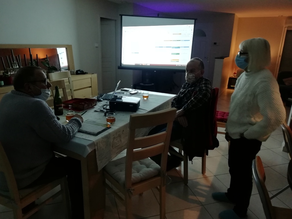 La réunion calendrier route s'est tenue vendredi 14 janvier chez Maryline et Thierry autour de l'agenda google, d'une bouteille de cidre et derrière les masques...